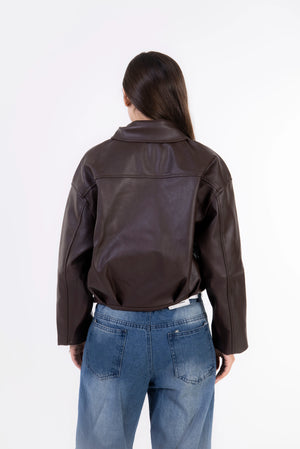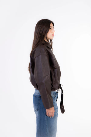 Rider Leather Zip-Up Jacket - Brown