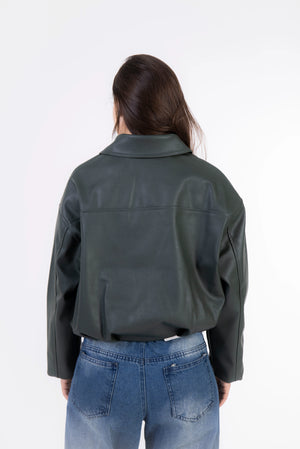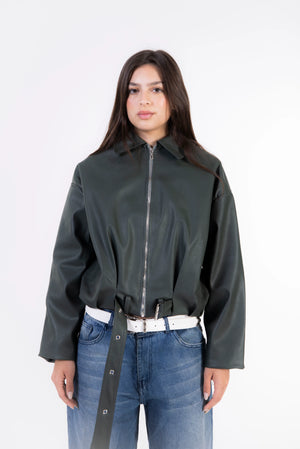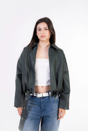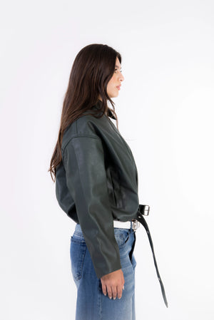 Rider Leather Zip-Up Jacket - Dark Olive
