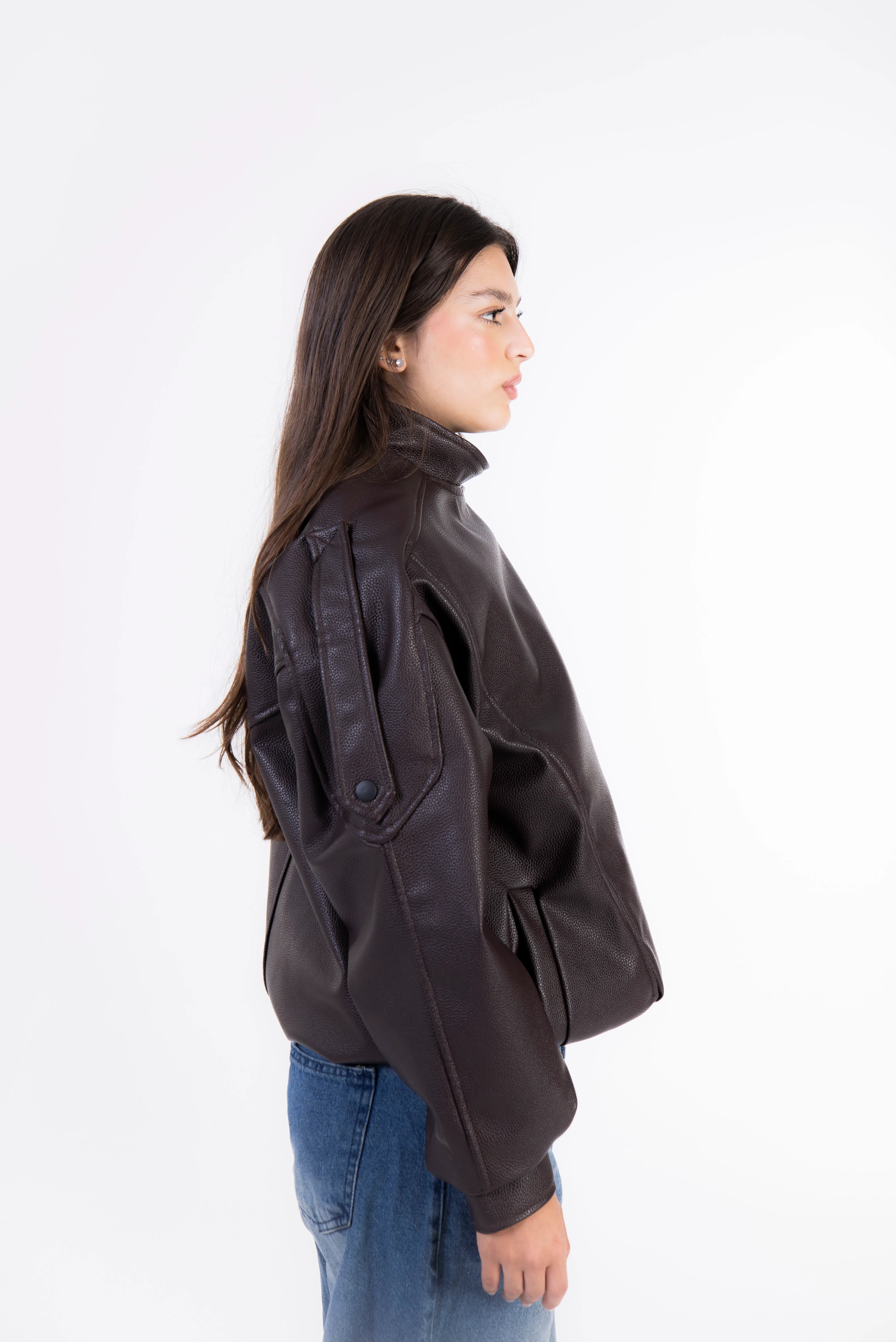 Textured Navy Leather Jacket - Brown