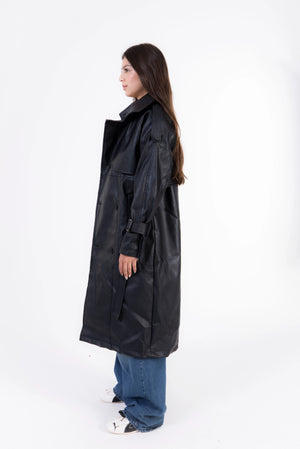 Valor Leather Trench Coat - Black